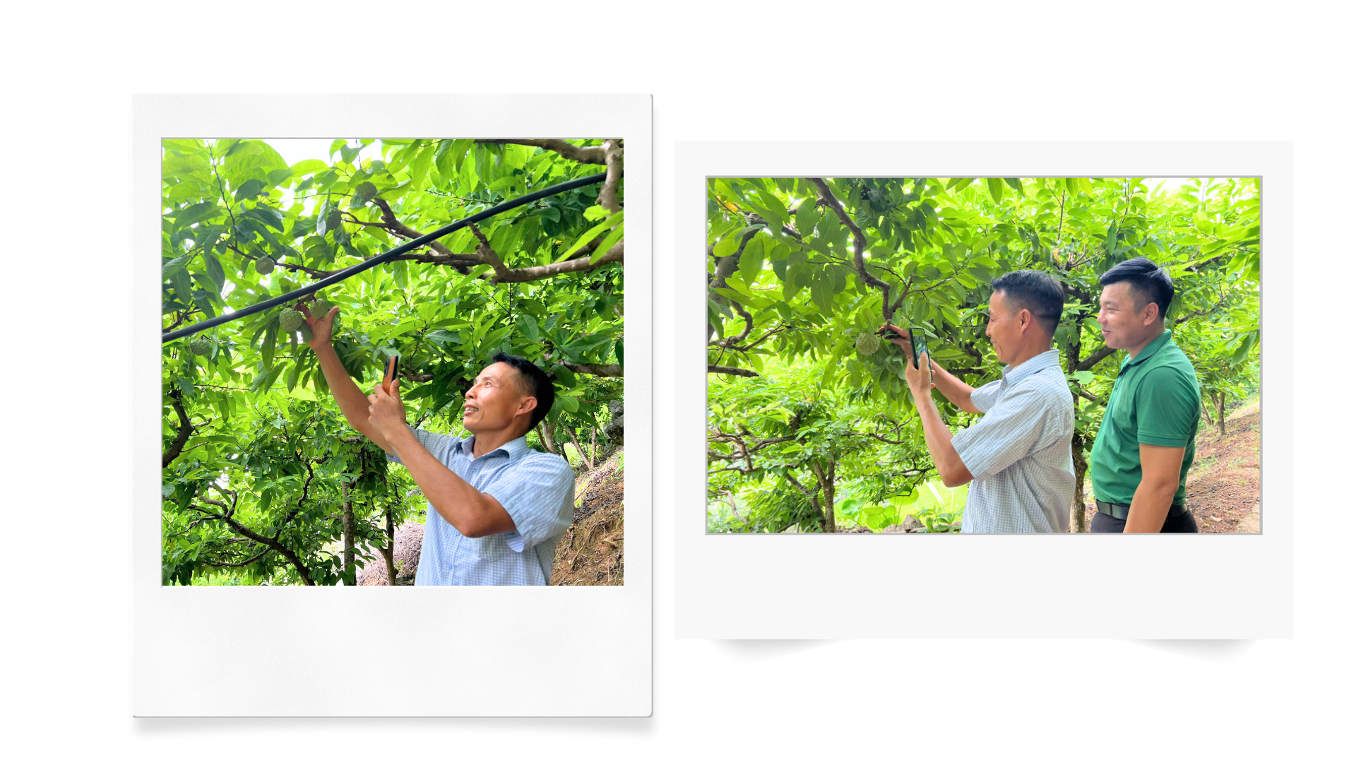 | Người dân thôn Khuôn Thống livestream vườn na bán hàng qua mạng. |