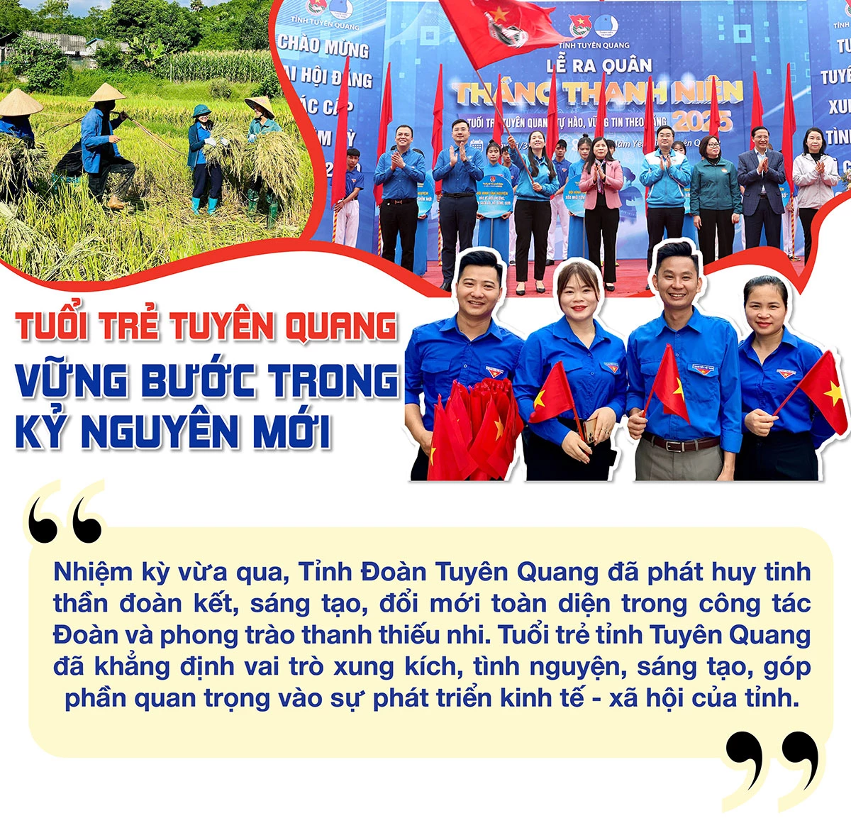 Với vai trò là hạt nhân tiên phong, đổi mới, sáng tạo, thế hệ trẻ Tuyên Quang chính là nhân tố quyết định để hiện thực hóa mục tiêu chiến lược của tỉnh. Chính từ nền tảng tự cường, tự tin trong kỷ nguyên mới, tuổi trẻ Tuyên Quang sẽ viết tiếp chương sử vẻ vang của quê hương cách mạng, đóng góp thiết thực để xây dựng tỉnh phát triển phồn vinh, hạnh phúc.
