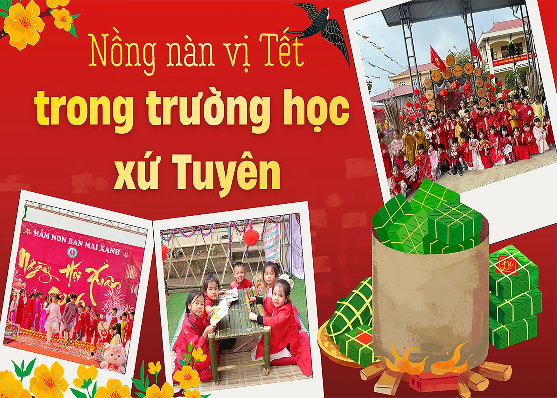 | Những ngôi trường rực rỡ trong sắc đỏ tượng trưng cho Tết. |