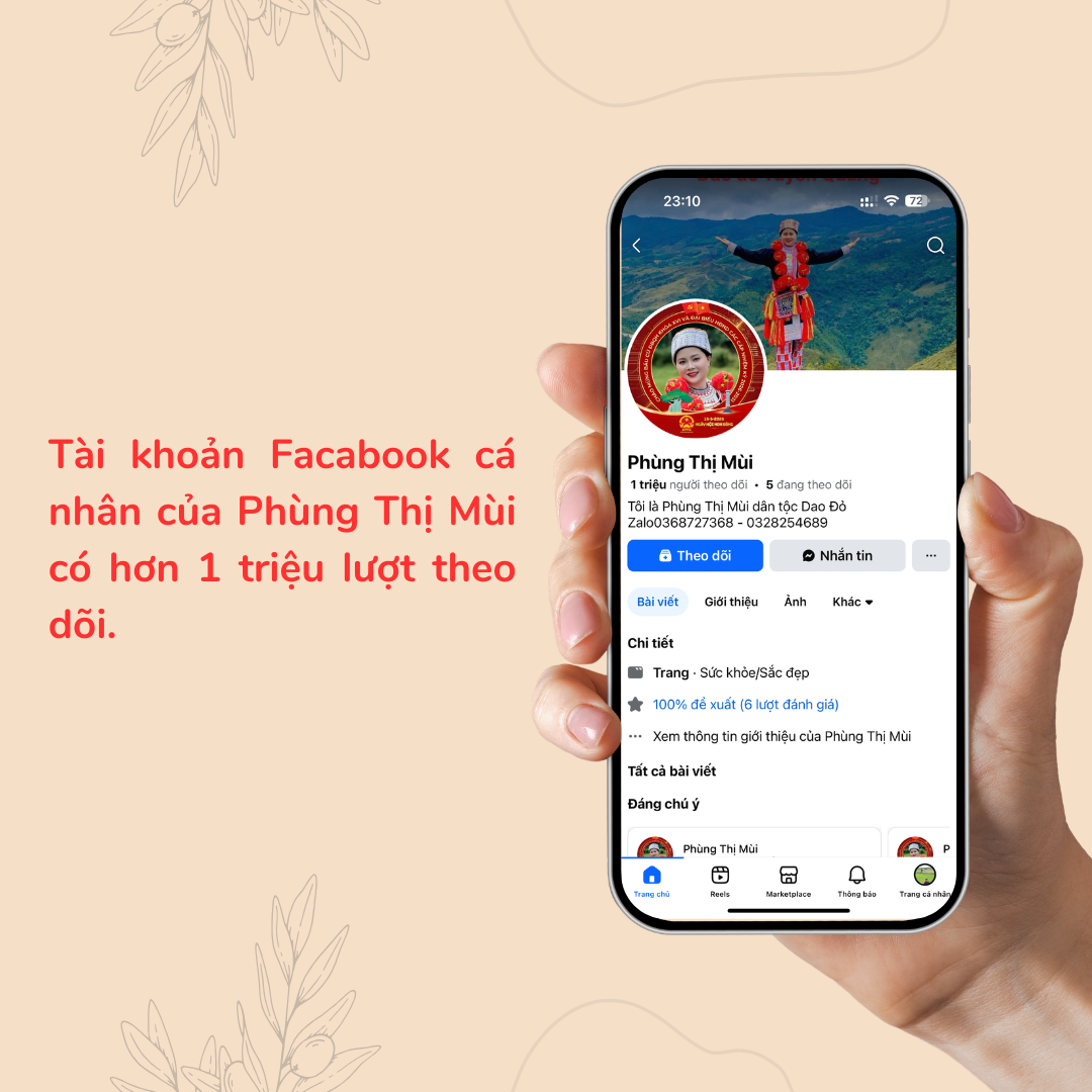 Sinh ra và lớn lên ở thôn Phiêng Luông, nơi cuộc sống còn nhiều khó khăn, Mùi từng gắn bó với nương rẫy như bao phụ nữ khác trong bản. Nhưng bằng sự nhạy bén và tinh thần dám nghĩ, dám làm, chị đã tận dụng mạng xã hội để quảng bá văn hóa dân tộc, chia sẻ cuộc sống vùng cao và lan tỏa những giá trị tích cực. Từ một cô gái bản, Mùi dần trở thành “gương mặt quen thuộc” trên không gian số, thu hút hàng triệu lượt theo dõi.