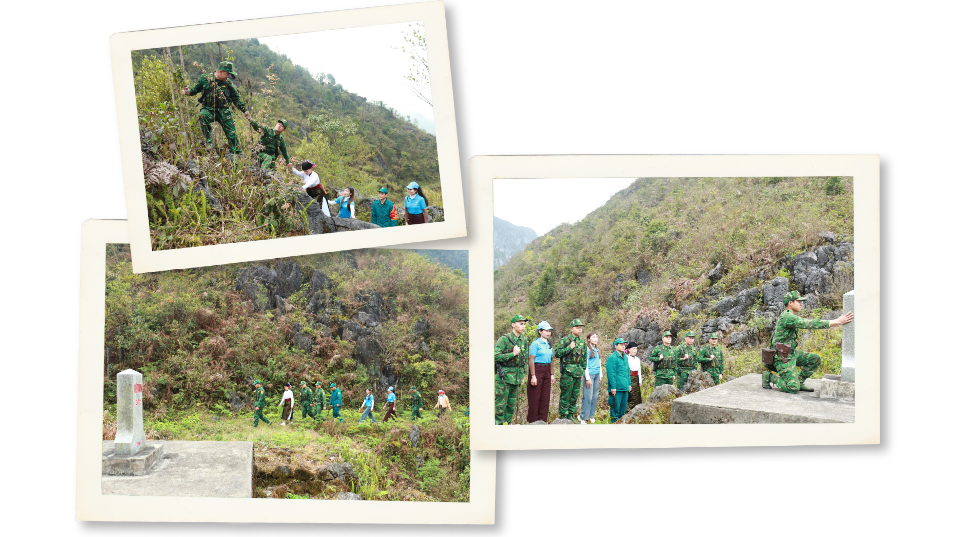| Phụ nữ xã Phố Bảng cùng cán bộ, chiến sỹ Đồn Biên phòng Phó Bảng tuần tra biên giới. |