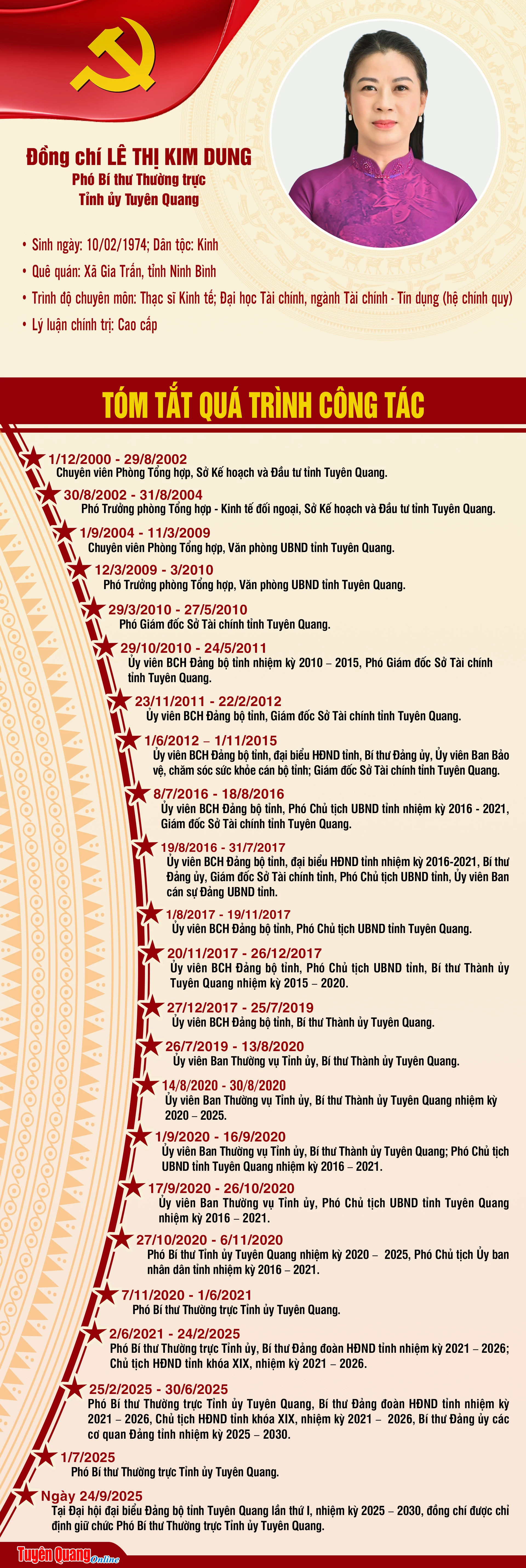 Tóm tắt tiểu sử đồng chí Lê Thị Kim Dung, Phó Bí thư Thường trực Tỉnh ủy Tuyên Quang