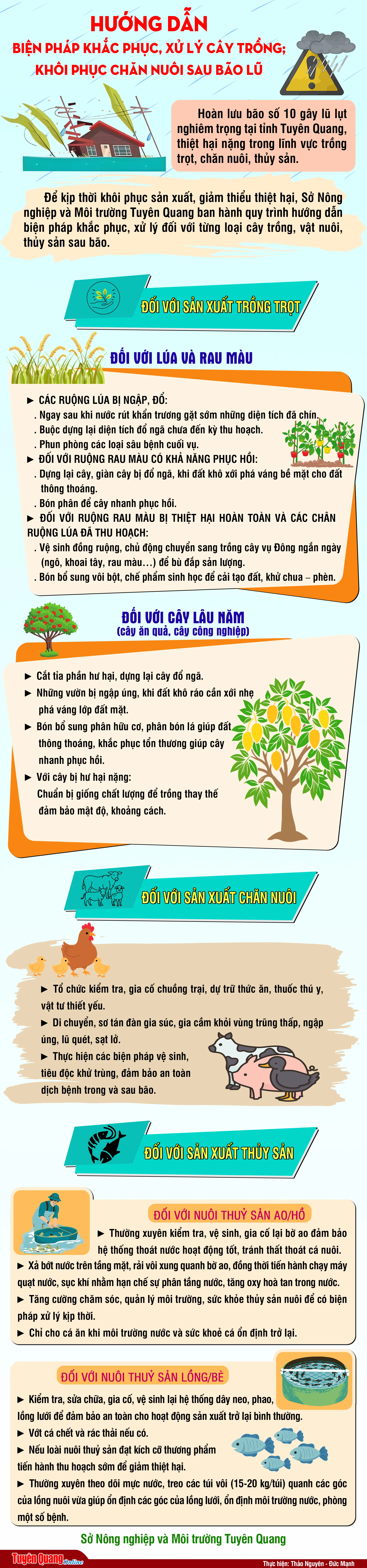 Hướng dẫn biện pháp khắc phục, xử lý cây trồng; khôi phục chăn nuôi sau bão lũ