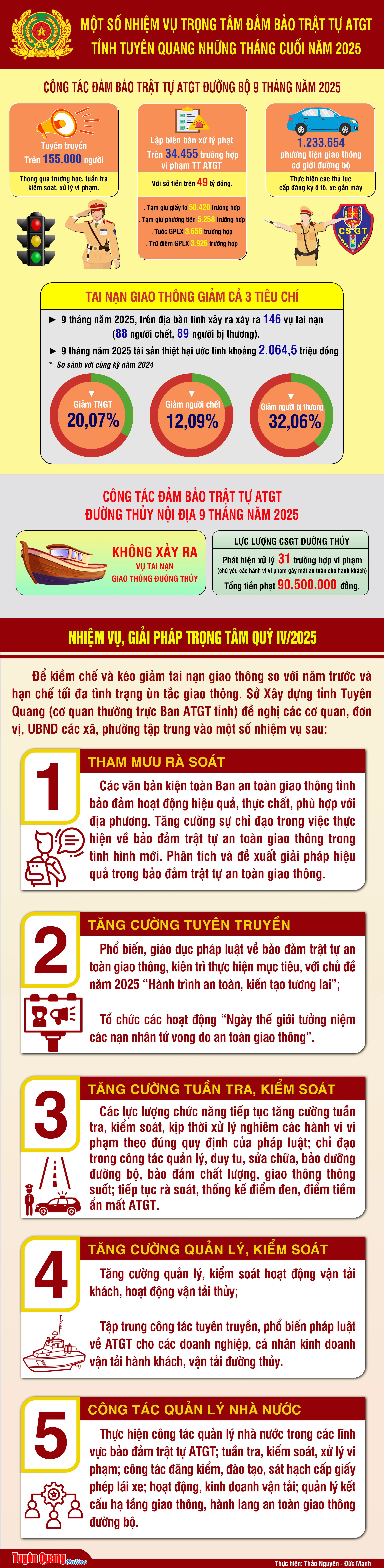 Một số nhiệm vụ trọng tâm đảm bảo trật tự ATGT tỉnh Tuyên Quang những tháng cuối năm 2025