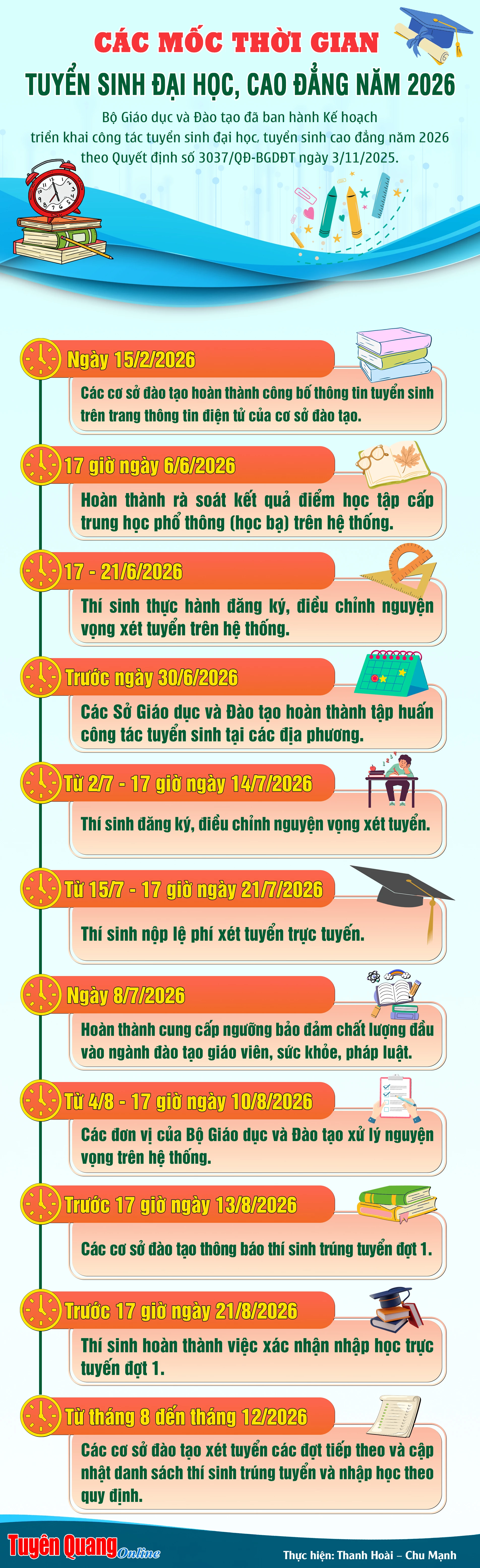 Các mốc thời gian tuyển sinh Đại học, Cao đẳng năm 2026