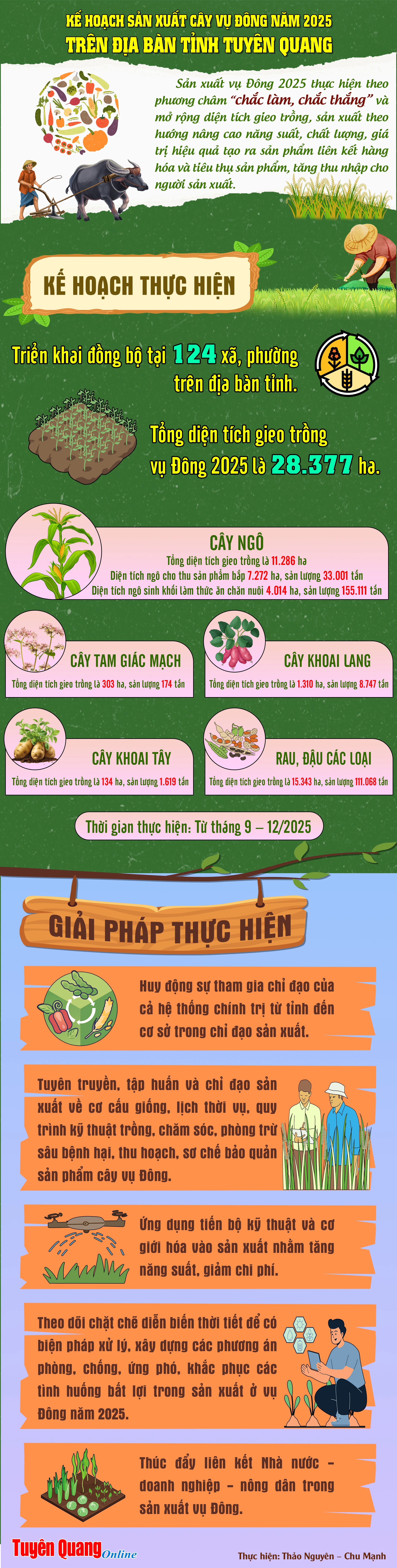Kế hoạch sản xuất cây vụ Đông năm 2025 trên địa bàn tỉnh Tuyên Quang