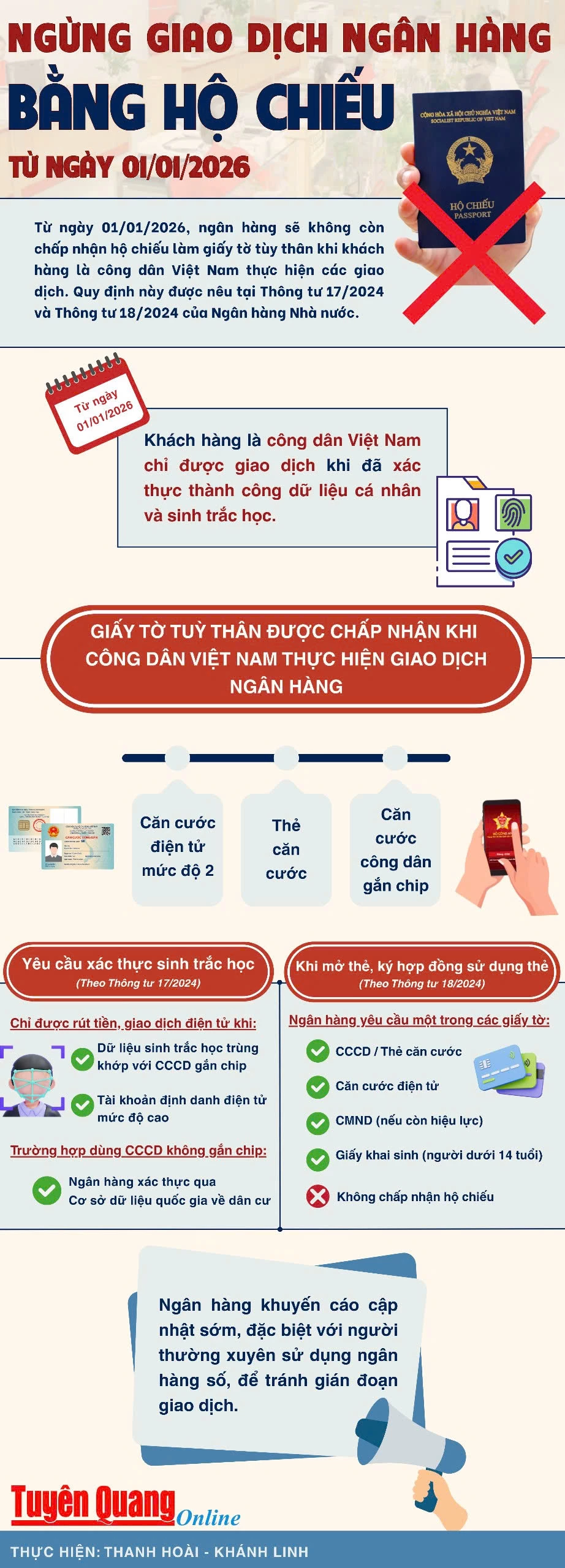 Ngừng giao dịch ngân hàng bằng hộ chiếu từ ngày 01/01/2026