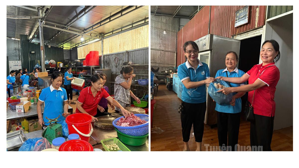 Hội viên phụ nữ xã Vị Xuyên ủng hộ nhu yếu phẩm, tổ chức nấu ăn hỗ trợ người dân bị ngập lụt. |