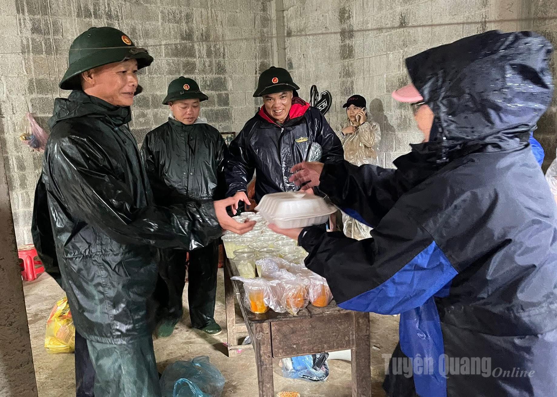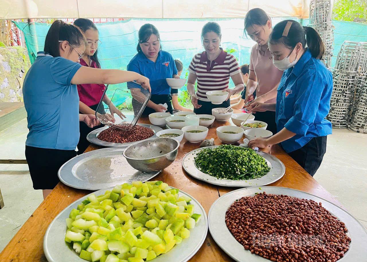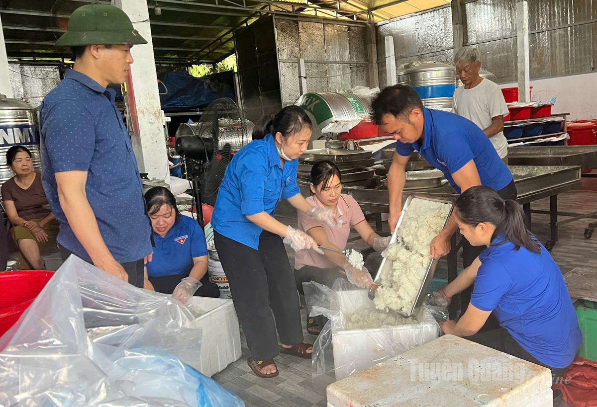 Đoàn viên thanh niên xã Chiêm Hóa cũng tích cực tham gia nấu ăn, chuẩn bị các suất cơm cho người dân bị ảnh hưởng bão lũ. |