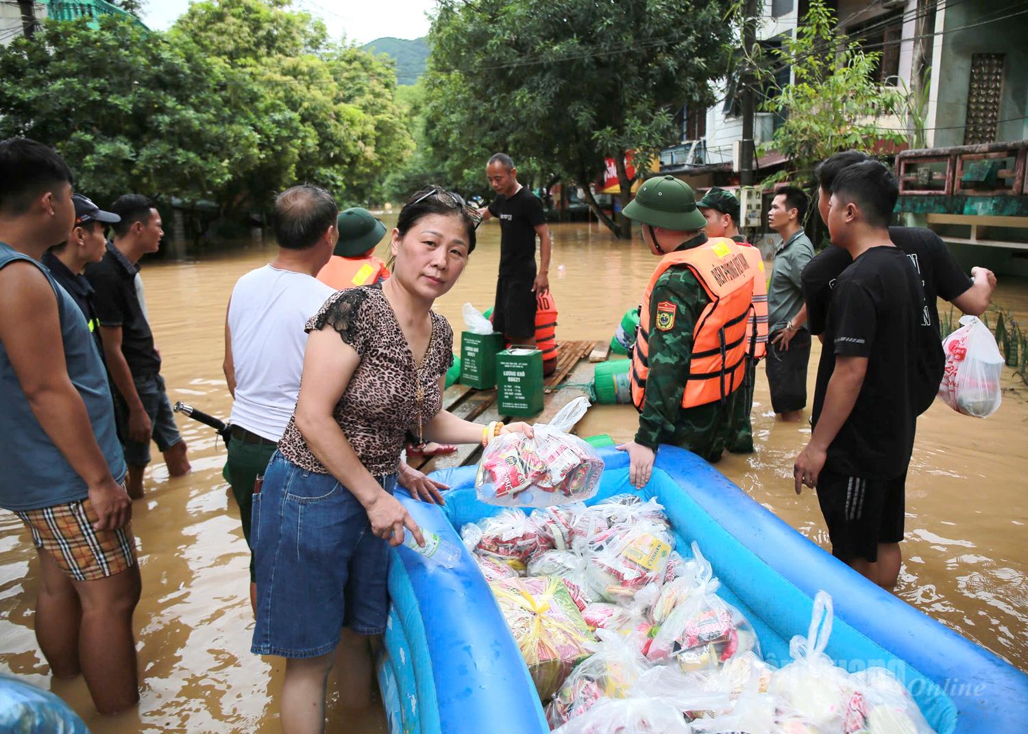 Những nhu yếu phẩm được hỗ trợ vận chuyển đến người dân các phường Hà Giang 1, 2 bị ảnh hưởng bởi mưa lũ. |