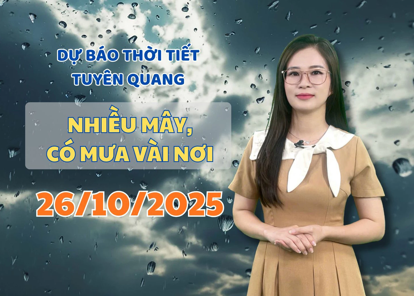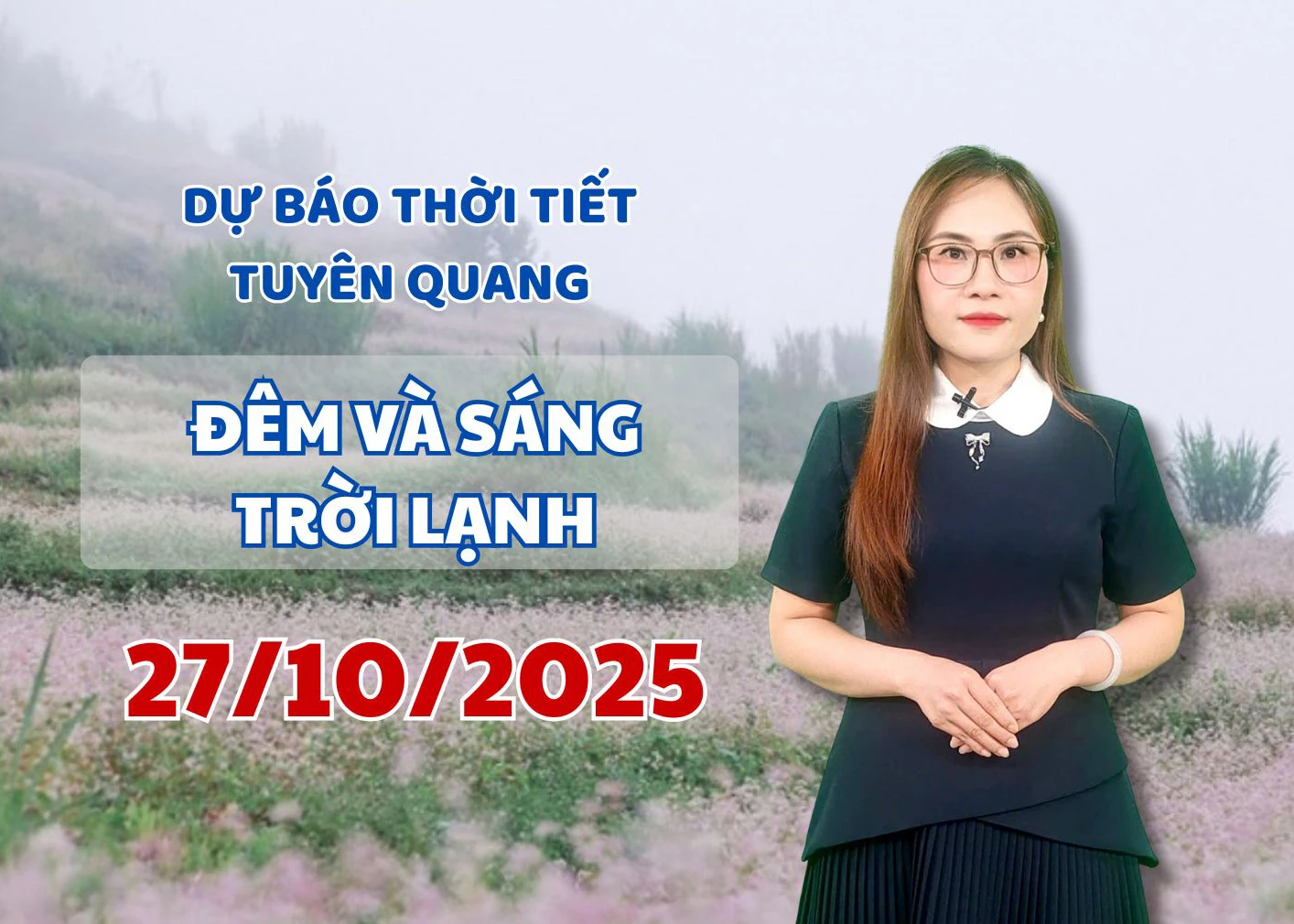 Thời tiết các khu vực trên địa bàn tỉnh Tuyên Quang trong đêm 26 ngày 27/10 phổ biến: Nhiều mây, đêm ít mưa, ngày hửng nắng gián đoạn. Gió nhẹ. Đêm và sáng trời lạnh, vùng núi cao trời rét, có nơi đêm và sáng rét đậm.