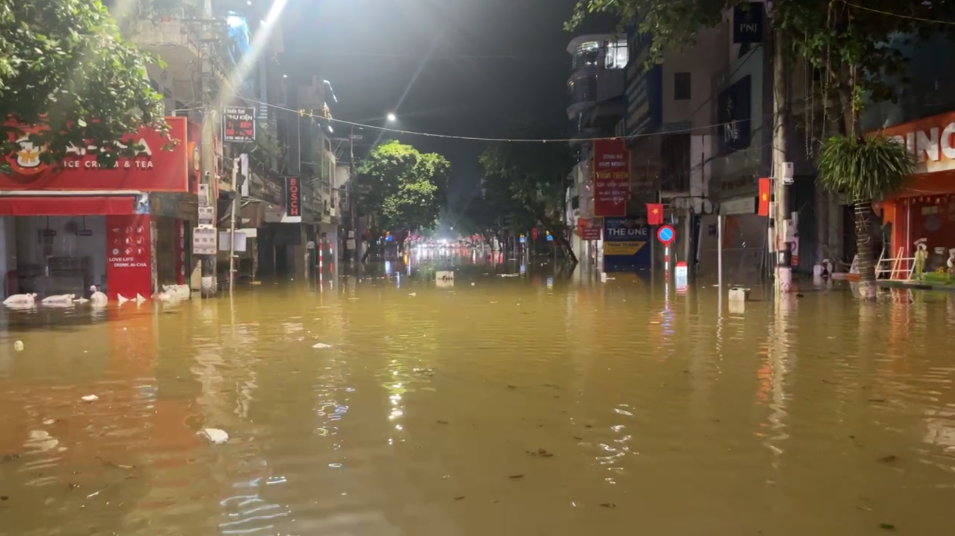 Flycam ghi lại cảnh ngập lụt tại các khu vực trung tâm tỉnh Tuyên Quang
