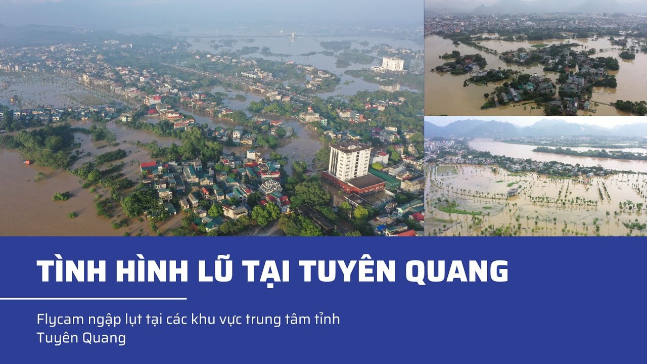 Flycam ghi lại cảnh ngập lụt tại các khu vực trung tâm tỉnh Tuyên Quang