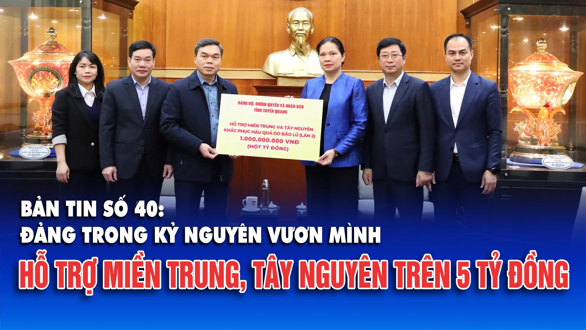 - Chủ tịch UBND tỉnh Phan Huy Ngọc: Các xã cần quyết liệt thực hiện các giải pháp phát triển kinh tế - xã hội ngay từ đầu năm 2026. - Tuyên Quang trao 1 tỷ đồng hỗ trợ lần 2 cho đồng bào miền Trung, Tây Nguyên. - Đoàn kiểm tra của Ủy ban bầu cử tỉnh kiểm tra công tác chuẩn bị và tổ chức bầu cử đại biểu Quốc hội và đại biểu HĐND các cấp tại các địa phương. - Phóng sự: Cảnh giác với các thông tin chống phá Đại hội Đảng.