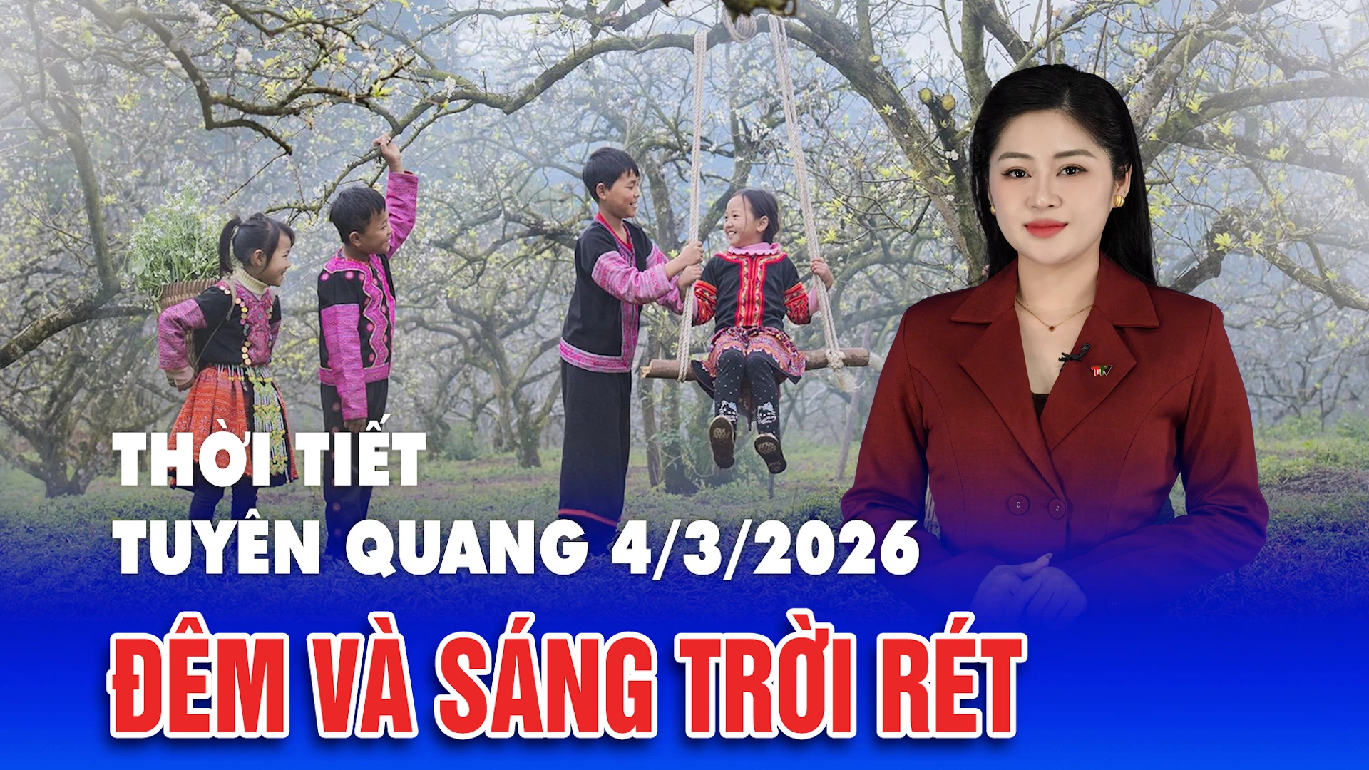 Thời tiết trên địa bàn tỉnh trong đêm 04 ngày 05/3/2026: Có mây, đêm và sáng có mù và sương mù, ngày trời nắng. Gió nhẹ. Đêm và sáng trời rét, vùng núi cao phía Bắc tỉnh đêm và sáng trời rét đậm.
