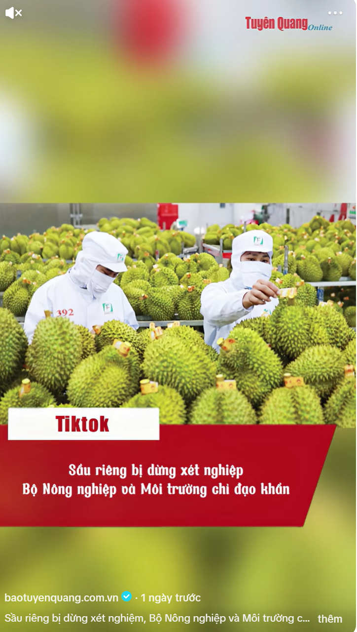 @baotuyenquang.com.vn Sầu riêng bị dừng xét nghiệm, Bộ Nông nghiệp và Môi trường chỉ đạo khẩn #BaoTuyenQuang #Saurieng #Chidao #Cadimin #VangO ♬ nhạc nền - Báo Tuyên Quang