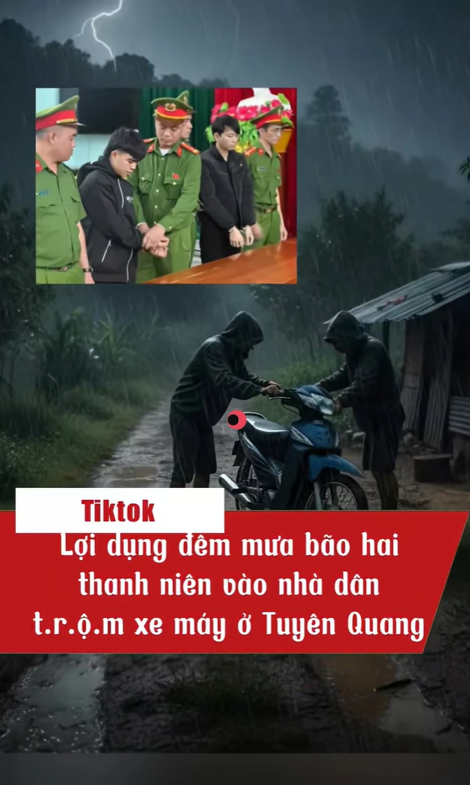 Lợi dụng đêm mưa bão, hai thanh niên vào nhà dân trộm xe máy ở Tuyên Quang