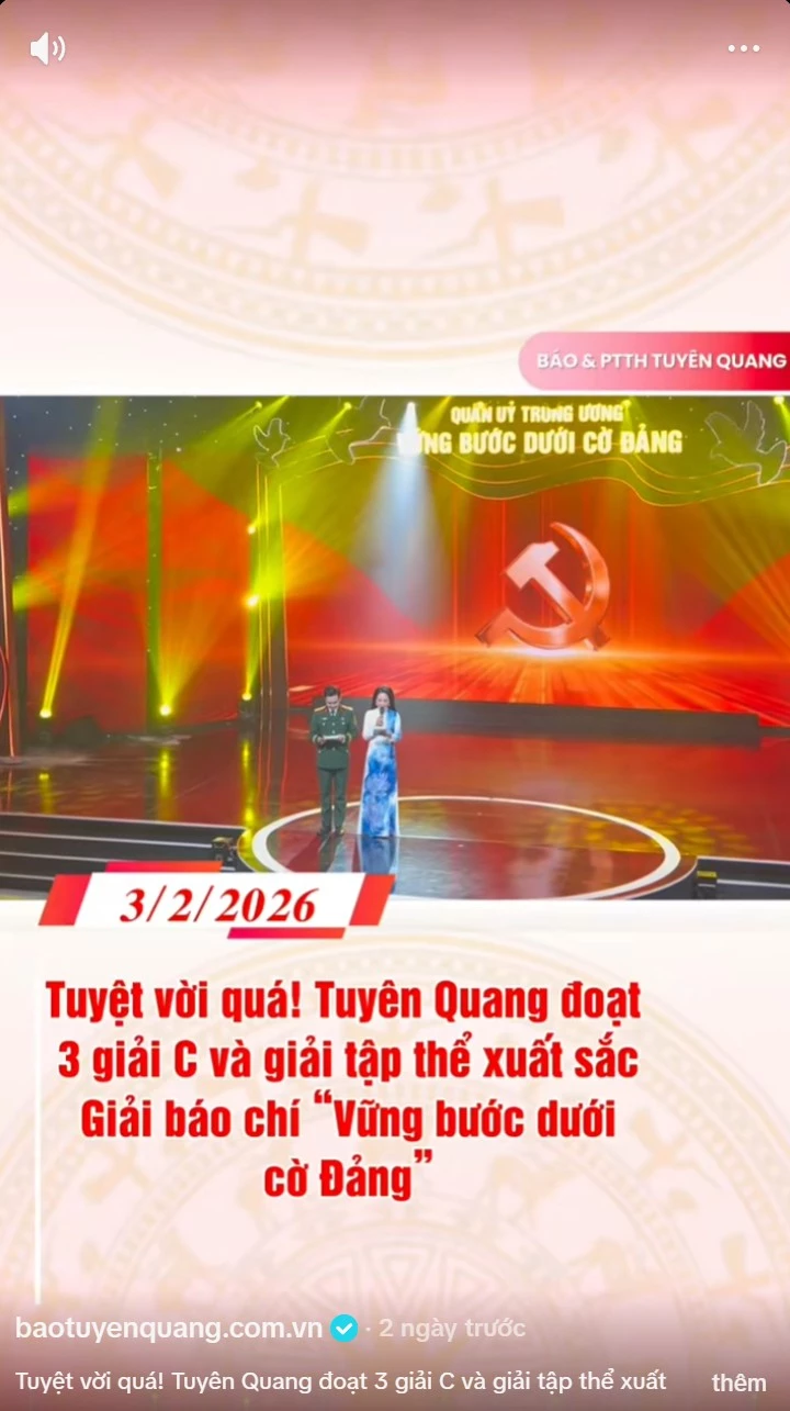 Tuyệt vời quá! Tuyên Quang đoạt 3 giải C và giải tập thể xuất sắc Giải báo chí Vững bước dưới cờ Đảng”