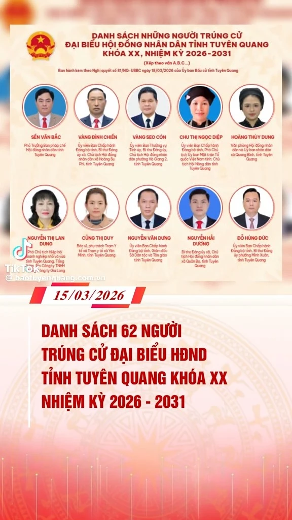 Chính thức công bố Danh sách những người trúng cử Đại biểu Hội đồng Nhân dân tỉnh khóa XX, nhiệm kỳ 2026 - 2031.