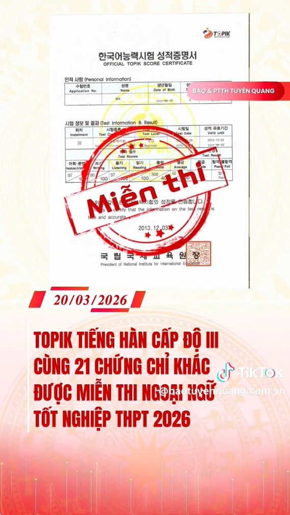 Topik tiếng Hàn cấp độ III cùng 21 chứng chỉ khác được miễn thi ngoại ngữ tốt nghiệp THPT 2026