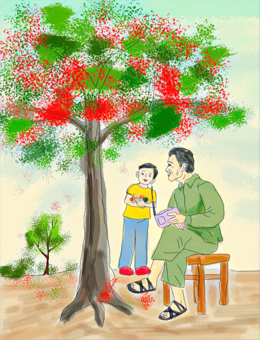 - Ông có khóc đâu, cái màu hoa phượng nó lấp lánh trong mắt ông đấy chứ, rồi giọng ông ấm áp.