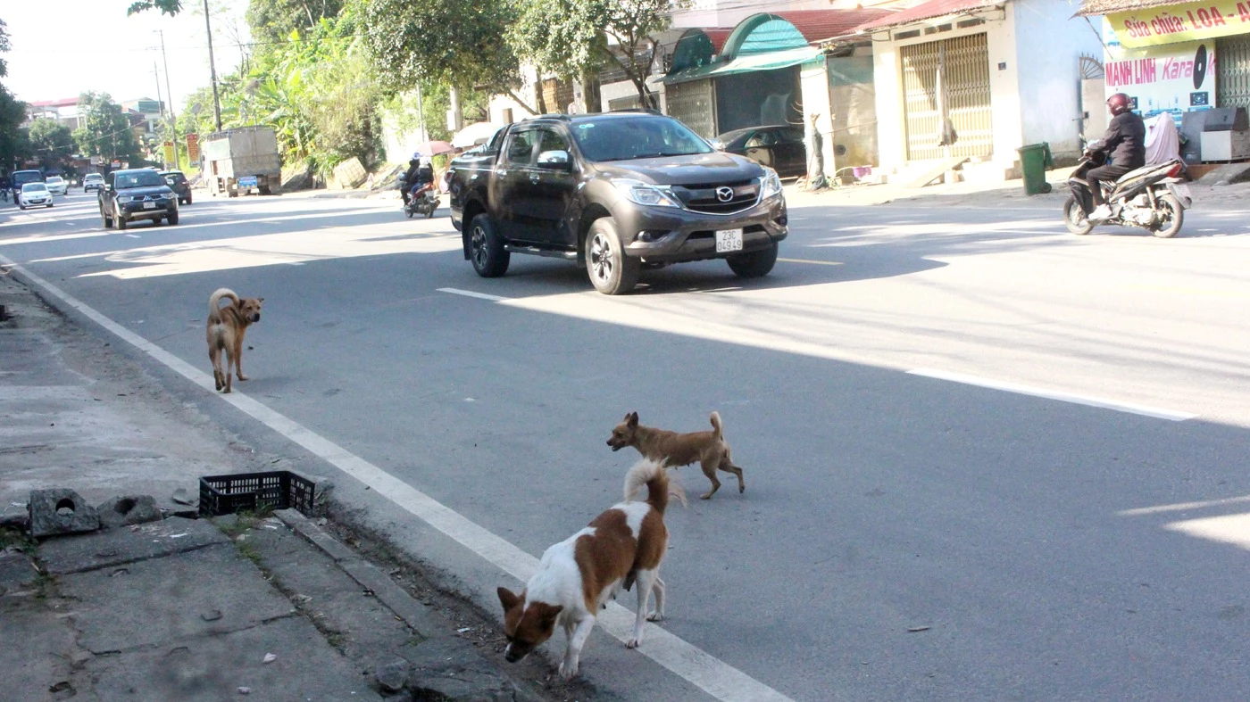 | Hình ảnh chó thả rông chạy thoải mái trên đường Lý Thường Kiệt, phường Hà Giang 2 gây nguy hiểm cho người dân và người tham gia giao thông. Ảnh chụp lúc 10h, ngày 22-11-2025. |