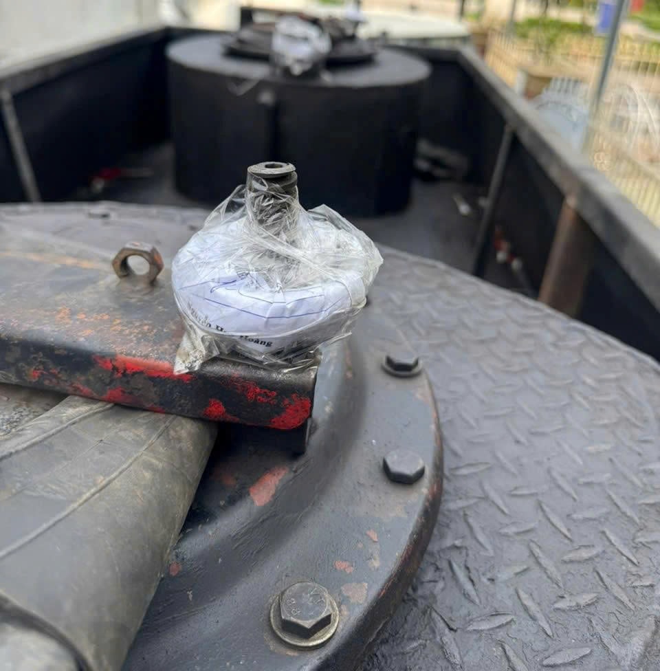 | Các tang vật là xe bồn và trạm bơm xăng bị niêm phong. Ảnh: Công an cung cấp. |