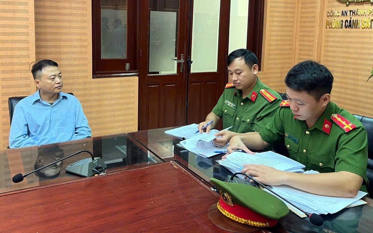 | Phó Đức Nam tại cơ quan công an. Ảnh: NB |
