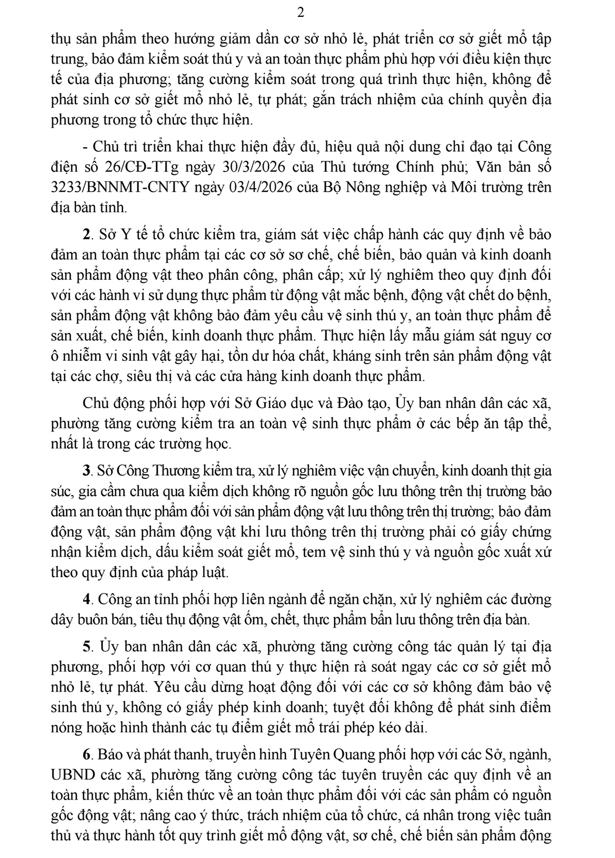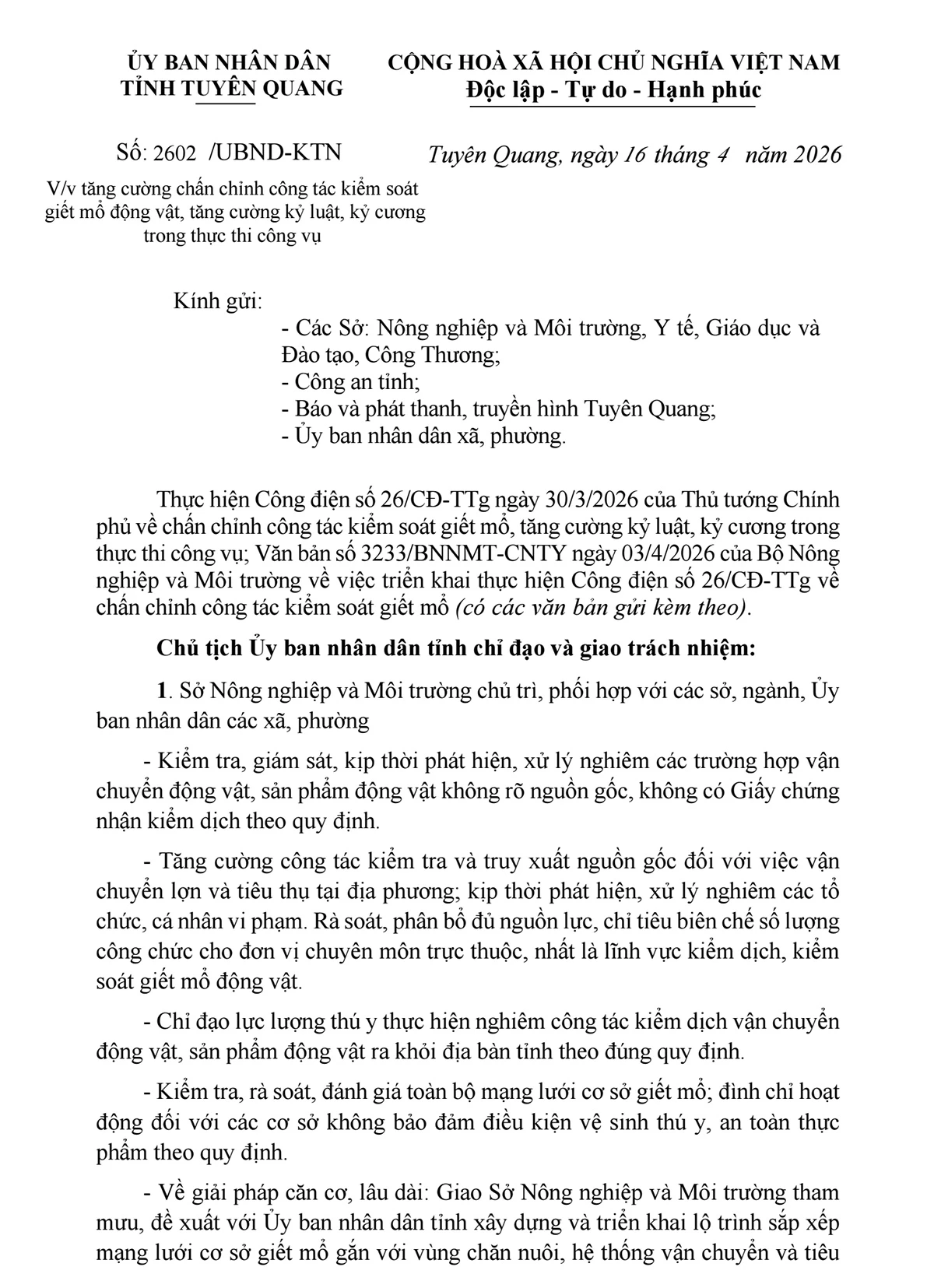 Tăng cường chấn chỉnh công tác kiểm soát giết mổ động vật, kỷ luật, kỷ cương trong thực thi công vụ