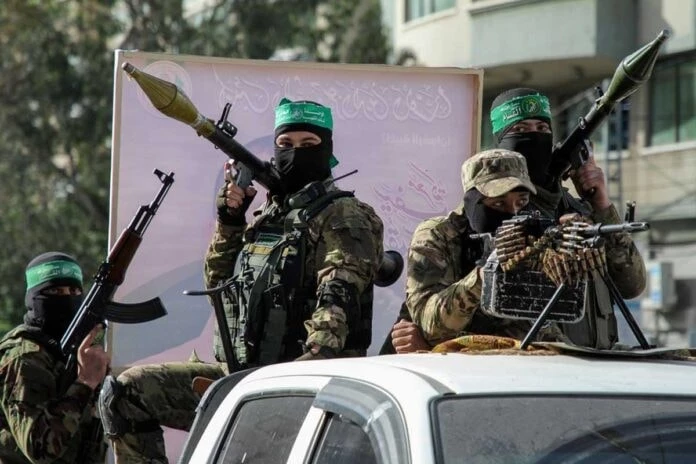 Các chiến binh Palestine thuộc Lữ đoàn al-Qassam, cánh vũ trang của phong trào Hamas. Ảnh: Xinhua |