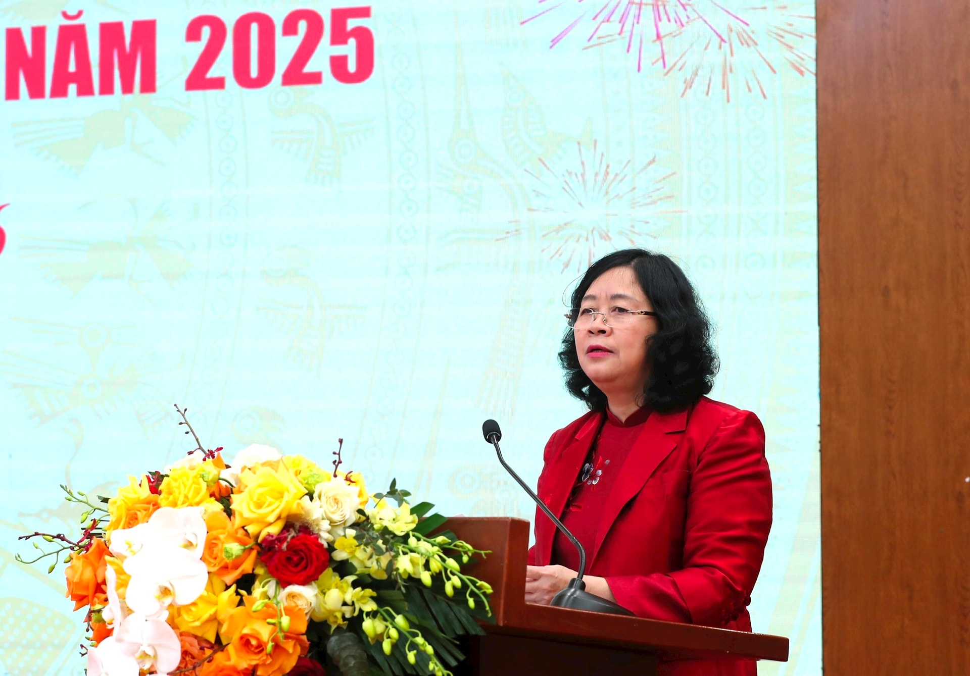 Thông tin về tình hình đất nước trong năm 2025, Chủ tịch MTTQ Việt Nam Bùi Thị Minh Hoài khẳng định những thành tựu đạt được trong năm vừa qua là minh chứng cho vai trò lãnh đạo và uy tín của Đảng, cùng với niềm tin và sự ủng hộ của nhân dân cả trong và ngoài nước, trong đó có cộng đồng NVNONN.