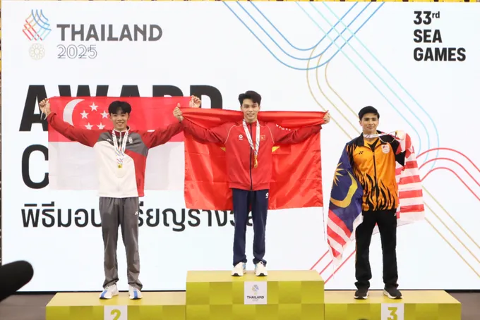| Đặng Ngọc Xuân Thiện (giữa) giành HCV SEA Games 33 -2025. Ảnh: THANH TÙNG |