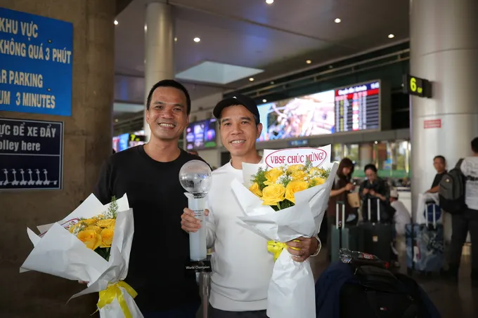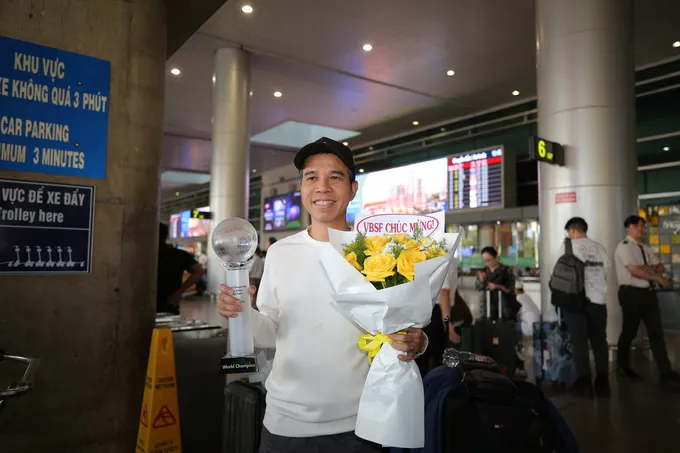 Dù khá mệt sau chuyến bay dài, nhưng khi bước ra bên ngoài với nhiều người hâm mộ đang chờ sẵn, 2 nhà vô địch đã nở nụ cười rất tươi và trao những cái ôm thân tình để đáp lại sự quan tâm ủng hộ của mọi người. Đón các tuyển thủ ở sân bay Tân Sơn Nhất còn có các đại diện của Liên đoàn billiards và snooker Việt Nam, Liên đoàn billiards và snooker TPHCM, bộ môn Billiards TPHCM.