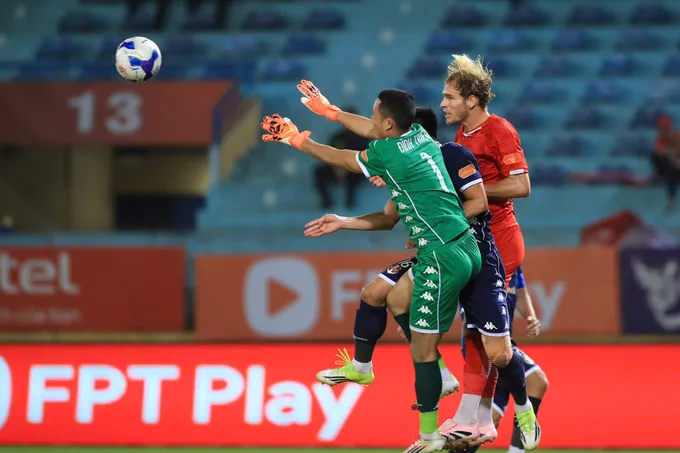 Không được đánh giá cao hơn đội chủ nhà về lực lượng, HLV Chu Đình Nghiêm đã xây dựng lối đá phòng ngự phản công chặt chẽ ngay từ đầu trận. Thủ môn Đình Triệu cùng các hậu vệ đã có trận đấu đầy vất vả, nhưng cũng đáng khen khi tổ chức bọc lót hiệu quả trước sức ép từ đội chủ nhà.