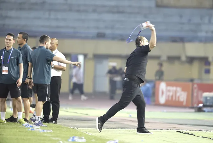 Không thể kềm chế, HLV Velizar Popov đã phản ứng rất quyết liệt về phía trọng tài chính dù trợ lý trọng tài tích cực can ngăn. Trọng tài Viết Duẩn đã rút thẻ vàng cảnh cáo, nhưng ông Popov càng phản ứng bằng động tác áp sát trọng tài, để rồi ngay lập tức nhận thẻ đỏ.