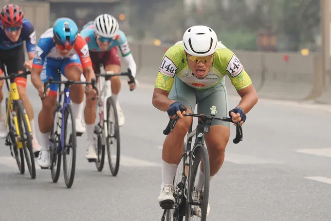 | Trịnh Đức Tâm tăng tốc về nhất Sprint 1. Ảnh: Hoàng Hùng |