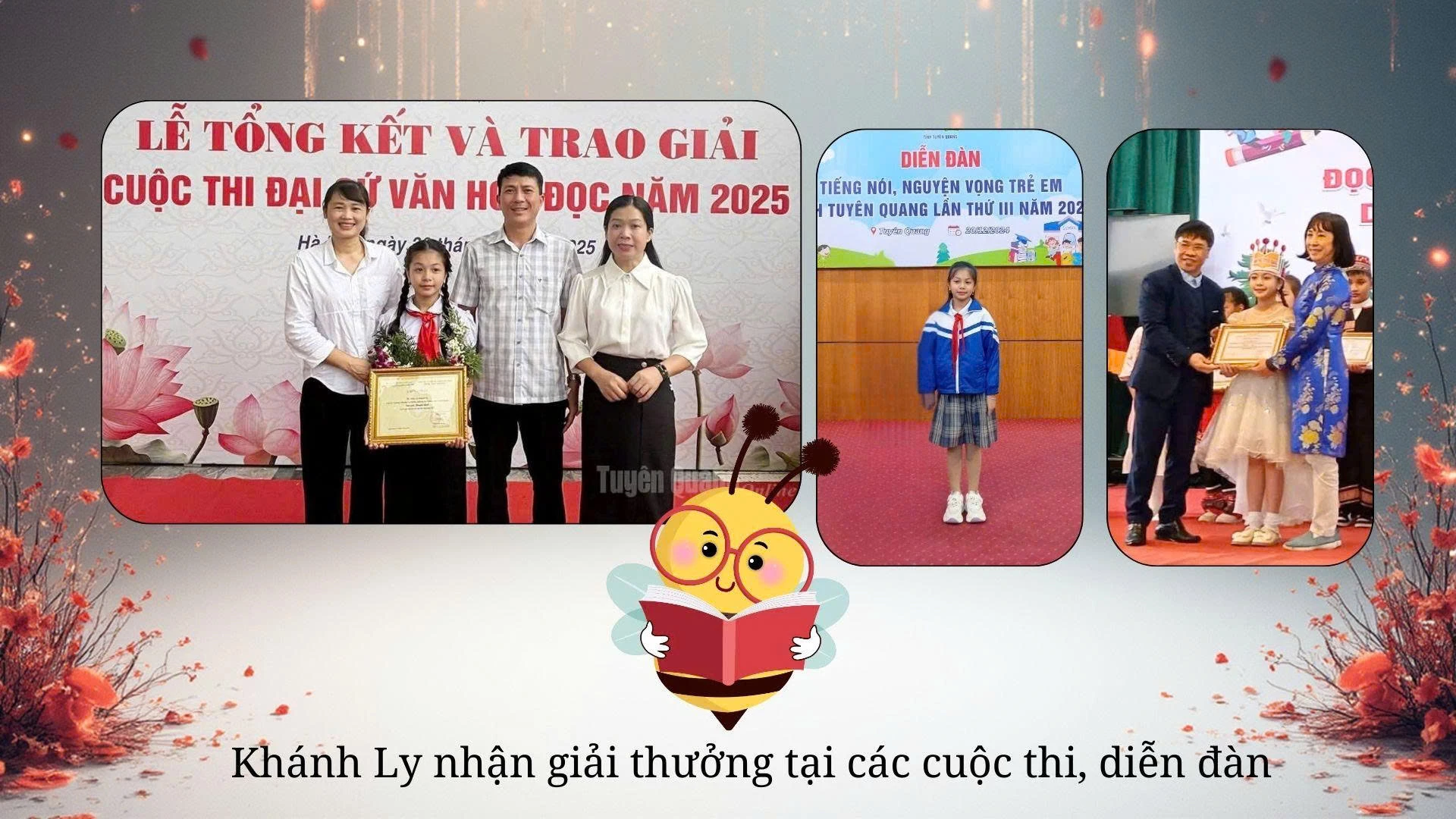 Năm 2025, Khánh Ly tham gia Cuộc thi “Đại sứ Văn hóa đọc” toàn quốc với bài thuyết trình giới thiệu về cuốn sách “Lê Duẩn – Một tư duy sáng tạo lớn, nhà lãnh đạo kiệt xuất của cách mạng Việt Nam”. Bài viết không chỉ thể hiện tình yêu sâu sắc với sách, giới thiệu rõ nét chân dung cố Tổng Bí thư Lê Duẩn - người học trò xuất sắc của Chủ tịch Hồ Chí Minh, mà còn là lời kêu gọi bạn bè cùng đọc, cùng khám phá tri thức. Em đã vượt qua hàng nghìn thí sinh trên cả nước để trở thành một trong những gương mặt nhỏ tuổi được vinh danh.