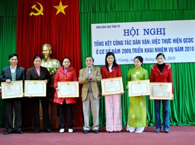 Nhân dịp này, Ban Dân vận Trung ương đã tặng Bằng khen cho 6 cá nhân; Ban Dân vận Tỉnh ủy tặng Giấy khen cho 17 tập thể, 21 cá nhân có thành tích xuất sắc trong công tác dân vận năm 2009.