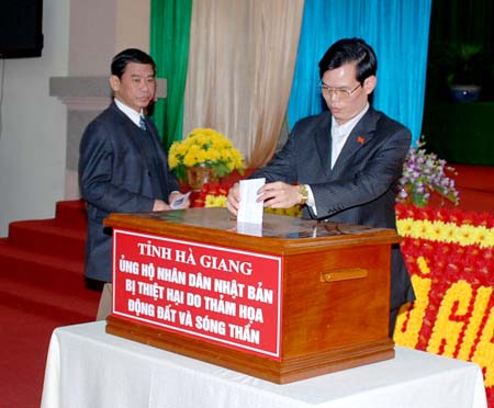 | Các đại biểu ủng hộ nhân dân Nhật Bản bị thiệt hại do thảm họa động đất, sóng thần.