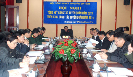 HGĐT- Ngày 7.1, Hội đồng Nghĩa vụ Quân sự (NVQS) tỉnh tổ chức Hội nghị tổng kết công tác tuyển quân 2013, triển khai nhiệm vụ năm 2014. Đồng chí Đàm Văn Bông, Phó Bí thư Tỉnh ủy, Chủ tịch UBND tỉnh, Chủ tịch Hội đồng NVQS tỉnh chủ trì hội nghị.