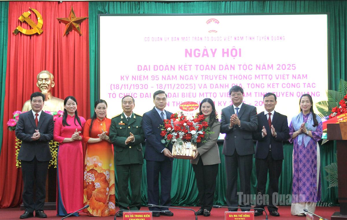Chiều 18-11, Ủy ban MTTQ Việt Nam tỉnh Tuyên Quang tổ chức Ngày hội Đại đoàn kết toàn dân tộc năm 2025; kỷ niệm 95 năm Ngày truyền thống MTTQ Việt Nam (18/11/1930-18/11/2025) và đánh giá, tổng kết công tác tổ chức Đại hội đại biểu MTTQ Việt Nam tỉnh Tuyên Quang lần thứ I, nhiệm kỳ 2025-2030. Đồng chí Ma Thế Hồng, Phó Bí thư Tỉnh ủy, Chủ tịch Ủy ban MTTQ Việt Nam tỉnh Tuyên Quang dự và chỉ đạo Ngày hội.