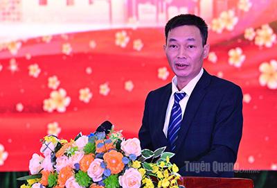 | Đồng chí Mai Đức Thông, Ủy viên Ban Chấp hành Đảng bộ tỉnh, Bí thư Đảng ủy, Giám đốc Báo và phát thanh, truyền hình Tuyên Quang, Chủ tịch Hội Nhà báo tỉnh phát biểu tại hội nghị. |