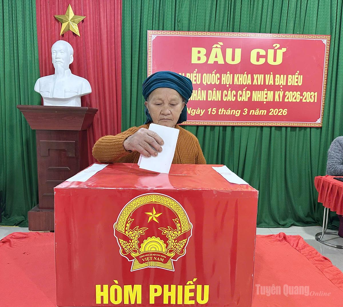 Sáng nay 15-3, hòa chung không khí rộn ràng trong cả nước, người dân Tuyên Quang từ chiến khu cách mạng đến biên cương, nơi địa đầu Tổ quốc đều nô nức đi bầu cử, thực hiện quyền và nghĩa vụ thiêng liêng của mình. Ngay từ sáng sớm, rất đông cử tri đã có mặt, trang phục chỉnh tề để lựa chọn những đại biểu xứng đáng nhất cho Quốc hội khóa XVI và HĐND các cấp, nhiệm kỳ 2026-2031. Tại các điểm, khu vực bỏ phiếu từ thành thị đến nông thôn, hay vùng sâu, vùng xa đều được trang trí cờ hoa rực rỡ, chào đón cử tri đi thực hiện quyền làm chủ của mình. Công tác chuẩn bị chu đáo cho Ngày hội non sông, đã tạo không khí phấn khởi để mỗi người dân thêm sáng suốt lựa chọn những đại biểu ưu tú nhất sẽ đại diện cho ý chí và nguyện vọng của nhân dân trong nhiệm kỳ tới, đóng góp xây dựng Tuyên Quang ngày càng phát triển, cùng cả nước vững bước vào kỷ nguyên mới.