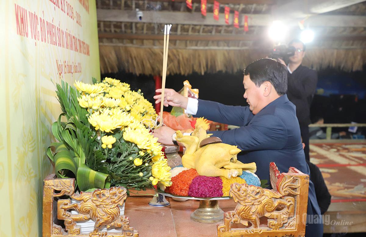 | Bí thư Tỉnh ủy Hầu A Lềnh dâng hương, hoa tại Đình Tân Trào trước giờ bầu cử. Ảnh: Văn Nghị |