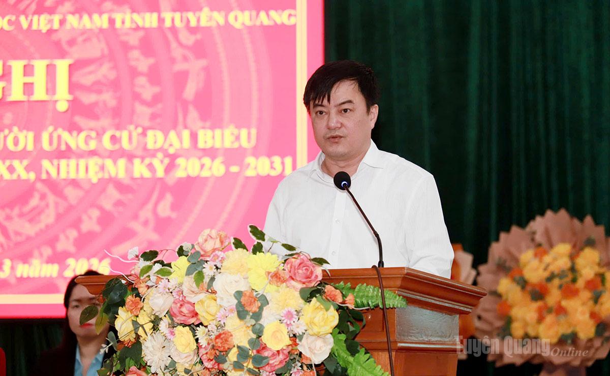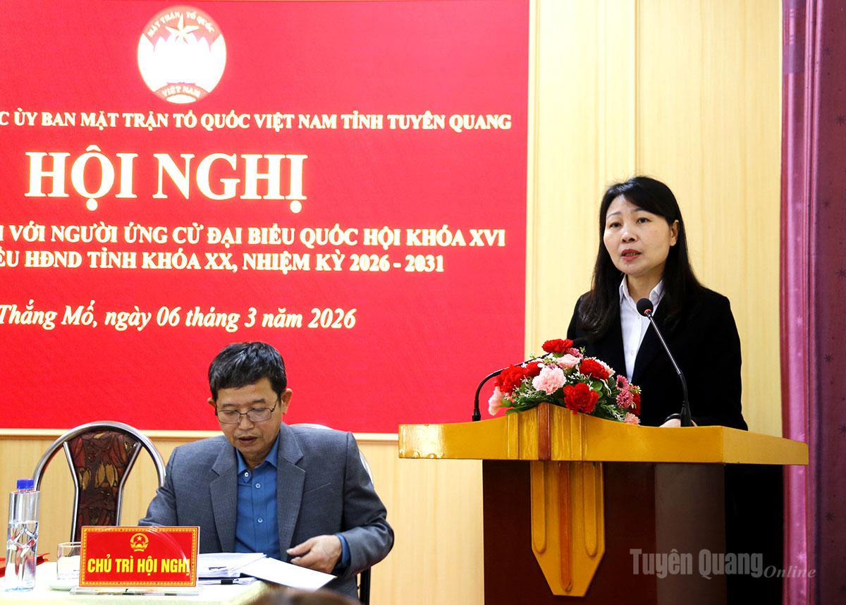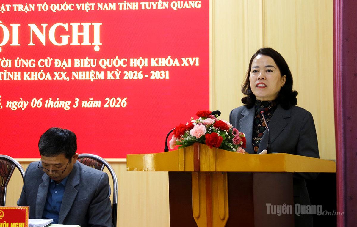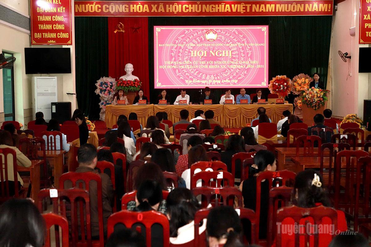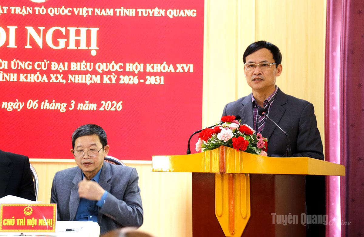 Tại hội nghị, đại diện Ban Thường trực Ủy ban MTTQ Việt Nam tỉnh thông qua tiểu sử tóm tắt của các ứng cử viên đại biểu HĐND tỉnh khóa XX, đơn vị bầu cử số 2 gồm 7 đồng chí: Âu Thị Mai, Ủy viên BCH Đảng bộ tỉnh, Phó Chủ tịch Ủy ban MTTQ Việt Nam tỉnh, Chủ tịch Hội LHPN tỉnh; Trần Thị Hà, Phó Trưởng ban Pháp chế, HĐND tỉnh; Hoàng Lê Huy, Phó Trưởng phòng Quy hoạch Đầu tư xây dựng, Văn phòng UBND tỉnh; Nguyễn Thị Hồng Xiêm, Phó Trưởng phòng Đô thị và Nhà ở, Sở Xây dựng tỉnh; Nguyễn Minh Anh Tuấn, Hiệu trưởng Trường Đại học Tân Trào; Nguyễn Thị Hải Yến, Bí thư Đoàn xã Hồng Sơn; Trần Thị Hải Yến, giáo viên Trường Mầm non Văn Phú, xã Hồng Sơn.