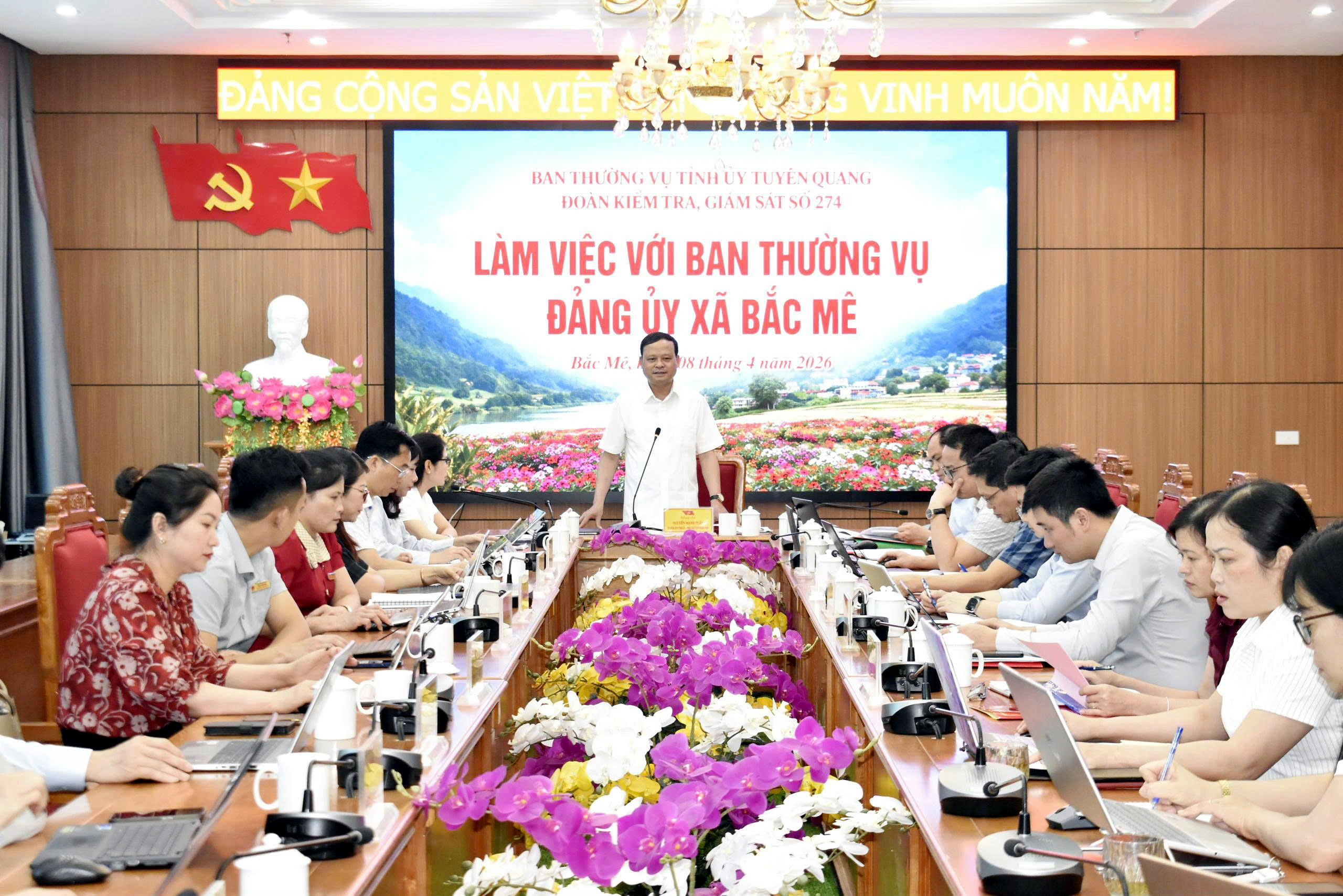 Chiều 8-4, Đoàn kiểm tra, giám sát số 274 của Ban Thường vụ Tỉnh uỷ do đồng chí Nguyễn Mạnh Tuấn, Ủy viên Ban Thường vụ Tỉnh ủy, Phó Chủ tịch UBND tỉnh làm Trưởng đoàn có buổi kiểm tra, giám sát với Ban Thường vụ Đảng uỷ xã Bắc Mê nhằm kiểm tra, đánh giá việc triển khai, quán triệt các nghị quyết của Đảng; kết quả thực hiện các nhiệm vụ chính trị, hoạt động của chính quyền địa phương 2 cấp; công tác quản lý đầu tư công trên địa bàn.