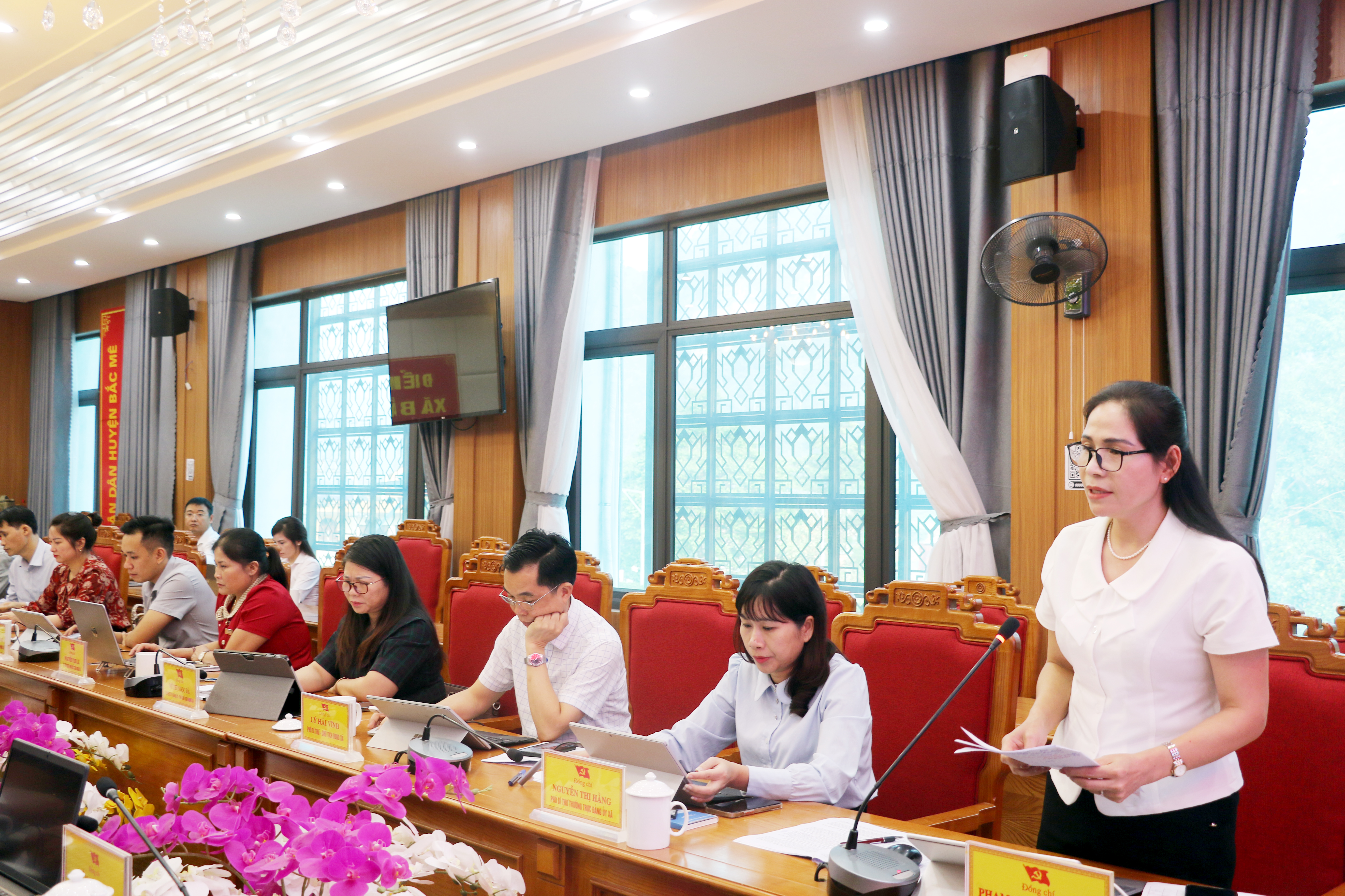 | Đồng chí Phạm Thị Hồng Yên, Ủy viên Ban Chấp hành Đảng bộ tỉnh, Bí thư Đảng ủy, Chủ tịch HĐND xã Bắc Mê đề xuất, kiến nghị với đoàn. |