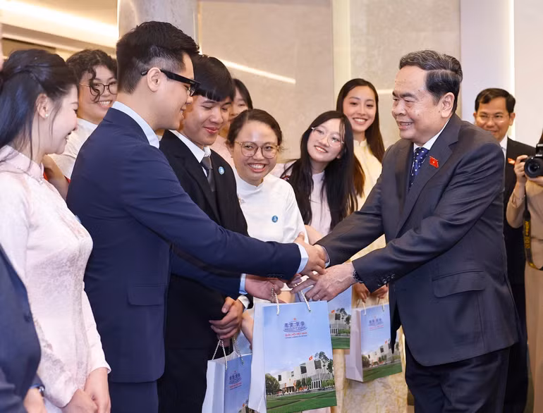 Chủ tịch Quốc hội chỉ rõ, các sinh viên, lưu học sinh tiêu biểu hôm nay đang đi đúng tinh thần của Nghị quyết Đại hội Đảng toàn quốc lần thứ XIV. Nhấn mạnh vai trò quan trọng của lực lượng trí thức, sinh viên, Chủ tịch Quốc hội nêu rõ, muốn tăng trưởng hai con số, ổn định kinh tế vĩ mô, kiềm chế lạm phát thì phải coi trọng phát triển khoa học công nghệ, đổi mới sáng tạo và chuyển đổi số. Để phát triển các lĩnh vực này, Chủ tịch Quốc hội nhất trí cho rằng, phải tiếp tục hoàn thiện thể chế.