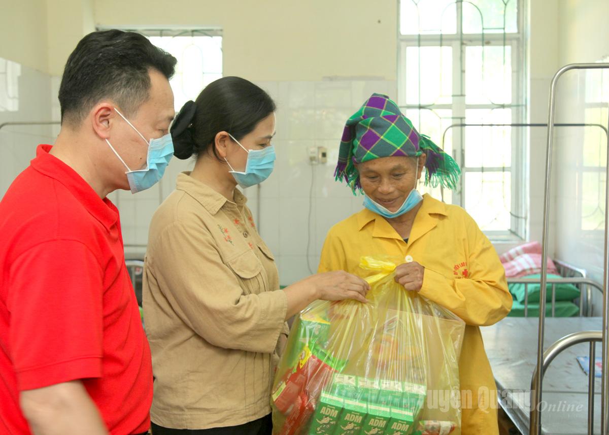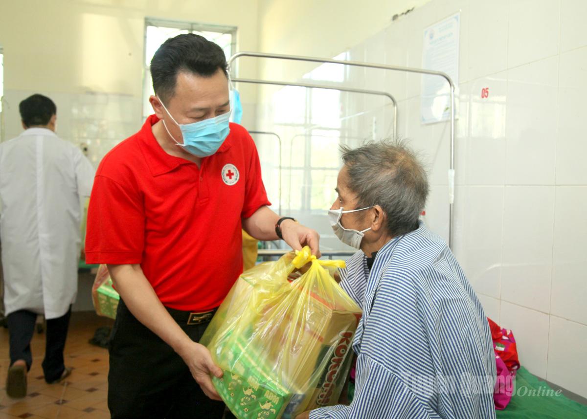 Đồng chí Nguyễn Hoàng Long, Chủ tịch Hội Chữ thập đỏ tỉnh tặng quà cho bệnh nhân Bệnh viện Phổi Hà Giang. |