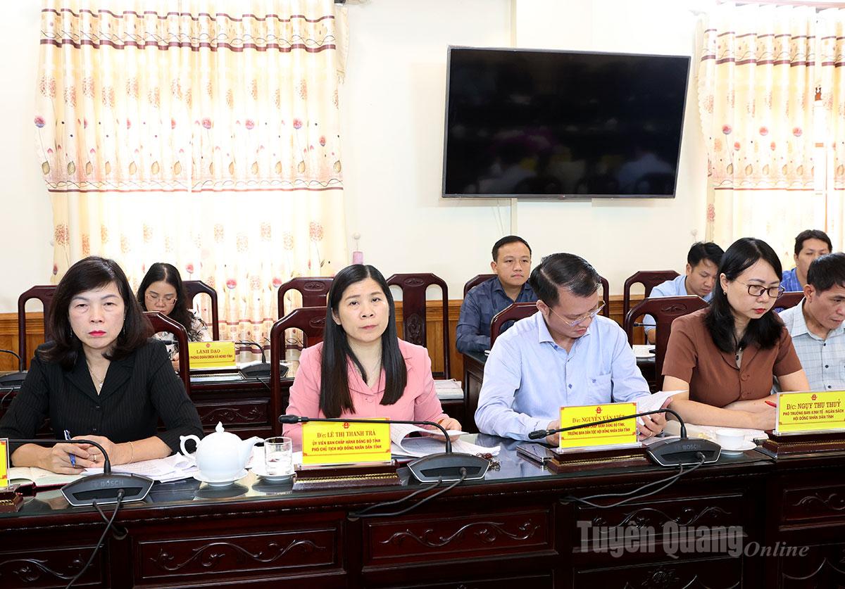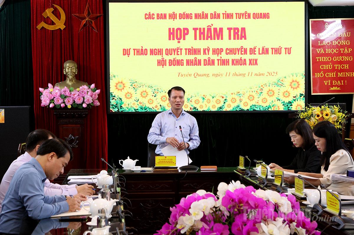 Tại cuộc họp, Ban Kinh tế - Ngân sách HĐND tỉnh đã thẩm tra dự thảo nghị quyết về việc điều chỉnh kế hoạch đầu tư công trung hạn vốn ngân sách địa phương giai đoạn 2021-2025 và năm 2025 tỉnh Tuyên Quang. Ban Dân tộc HĐND tỉnh thẩm tra dự thảo nghị quyết về việc phân bổ dự toán chi thường xuyên ngân sách nhà nước thực hiện Chương trình mục tiêu quốc gia phát triển kinh tế - xã hội vùng đồng bào dân tộc thiểu số và miền núi tỉnh Tuyên Quang năm 2025 (đợt 2). Dự thảo nghị quyết này tập trung phân bổ trên 195 tỷ đồng từ dự toán chi thường xuyên ngân sách nhà nước cho 10 dự án thành phần thuộc chương trình mục tiêu quốc gia.
